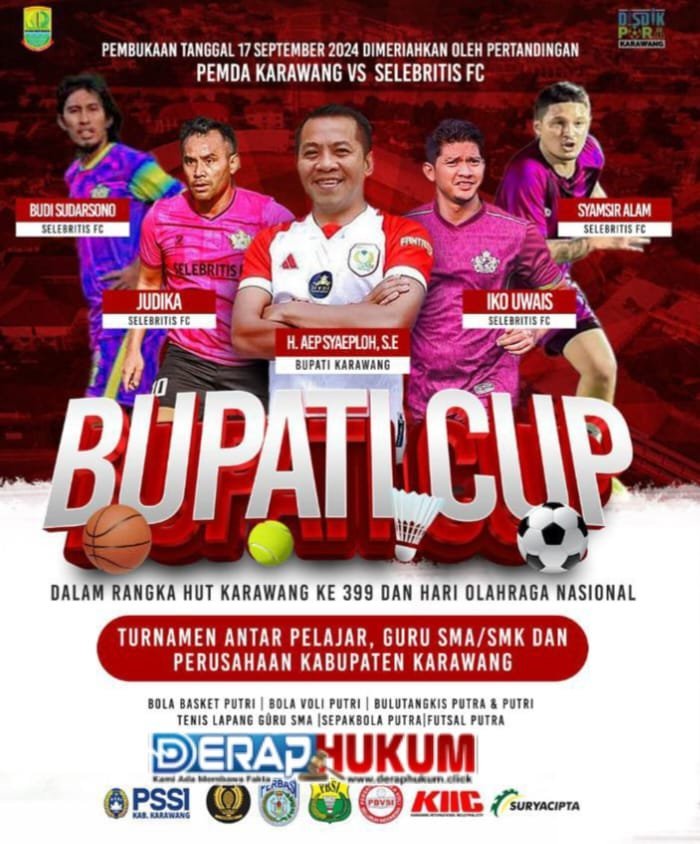 KARAWANG, | Deraphukum.click | Pembukaan tanggal 17 September 2024 dimeriahkan oleh pertandingan Pemda Karawang Vs Selebriti Fc