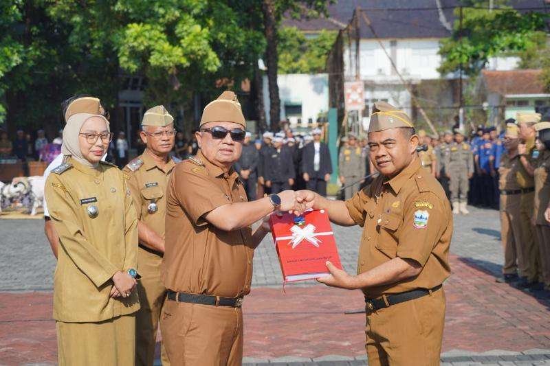 GARUT – DETIKKARAWANG.COM – Bupati Garut Abdusy Syakur Amin memimpin Apel Gabungan yang dirangkaikan dengan penyerahan Dokumen Perubahan Pelaksanaan Anggaran (DPPA) Tahun Anggaran 2025 kepada sejumlah Satuan Kerja Perangkat Daerah (SKPD), serta penyerahan bantuan Program Bina Lingkungan dalam rangka HUT PT. KAI, bertempat di Sekretariat Daerah (Setda) Kabupaten Garut, pada Senin (6/10/2025).
