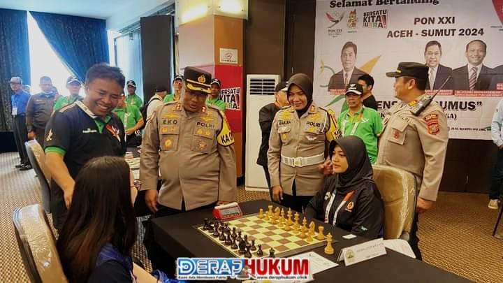 KARO– | Deraphukum.click | Perlombaan Catur hari pertama dalam rangkaian Pekan Olahraga Nasional PON XXI Aceh-Sumut dilaksanakan di Ball Room Hotel Mickey Holiday Resort, Desa Sempa Jaya, Kecamatan Berastagi Kabupaten Karo, Selasa 10/08/2024) pukul 14.00 WIB.