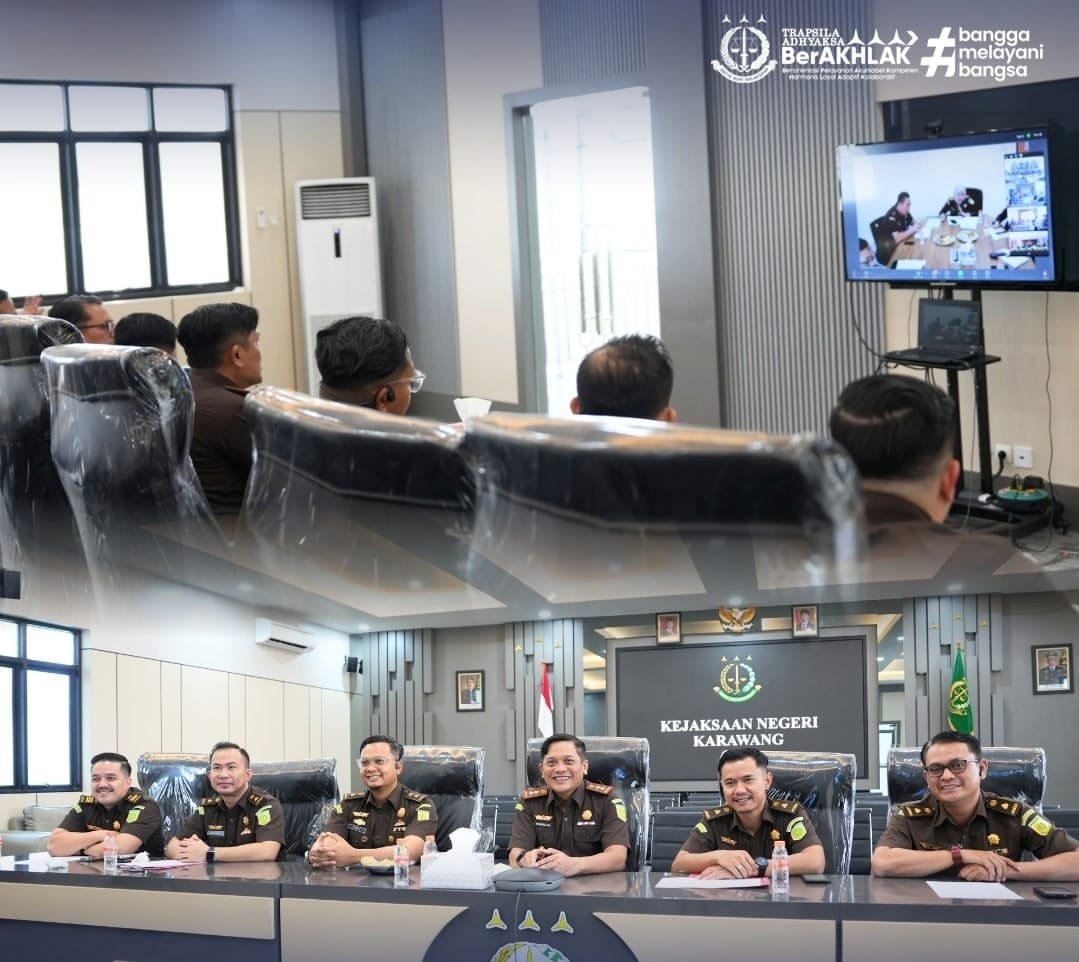 KARAWANG | DETIKKARAWANG.COM | Kepala Kejaksaan Negeri Karawang, Syaifullah, S.H., M.H. bersama seluruh Kepala Seksi di lingkungan Kejari Karawang mengikuti kegiatan Monitoring dan Evaluasi (Monev) Kinerja yang diselenggarakan oleh Bidang Pengawasan Kejaksaan Tinggi Jawa Barat pada Selasa (1/7). Kegiatan ini digelar secara virtual dari Aula Kejaksaan Negeri Karawang.