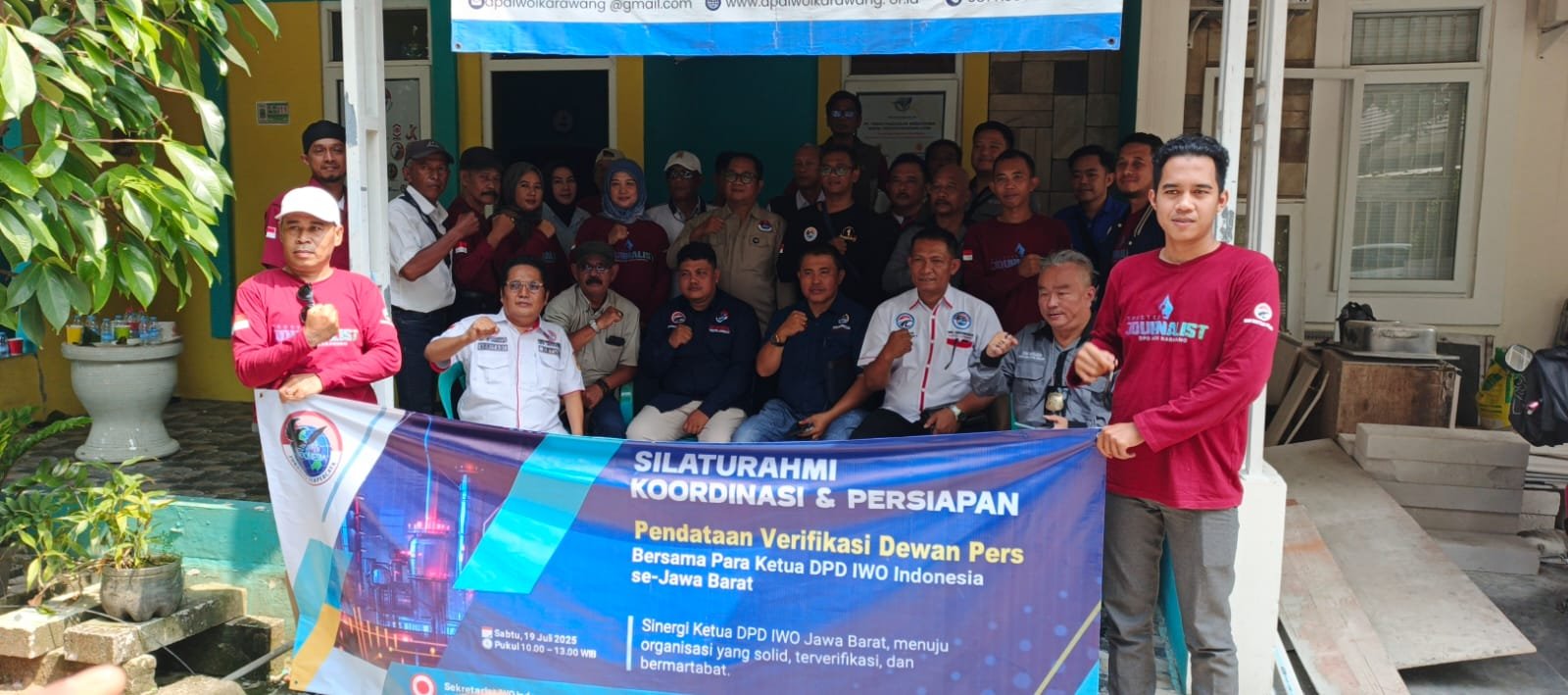 KARAWANG | DETIKKARAWANG.COM | Sejumlah Ketua Dewan Pimpinan Daerah (DPD) Ikatan Wartawan Online Indonesia (IWOI) se-Jawa Barat berkumpul dalam kegiatan Silaturahmi, Koordinasi, dan Persiapan Pendataan Verifikasi Dewan Pers, yang digelar di Sekretariat DPD IWO Indonesia Karawang, Perum Jasmine Village, Karawang Jawa Barat, Sabtu (19/7/2025).