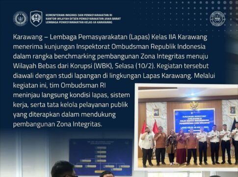 Karawang | DETIKKARAWANG.COM | Inspektorat Ombudsman Republik Indonesia melakukan kunjungan kerja ke Lembaga Pemasyarakatan (Lapas) Kelas IIA Karawang dalam rangka benchmarking pembangunan Zona Integritas (ZI) menuju predikat Wilayah Bebas dari Korupsi (WBK), Selasa (10/2/2026).