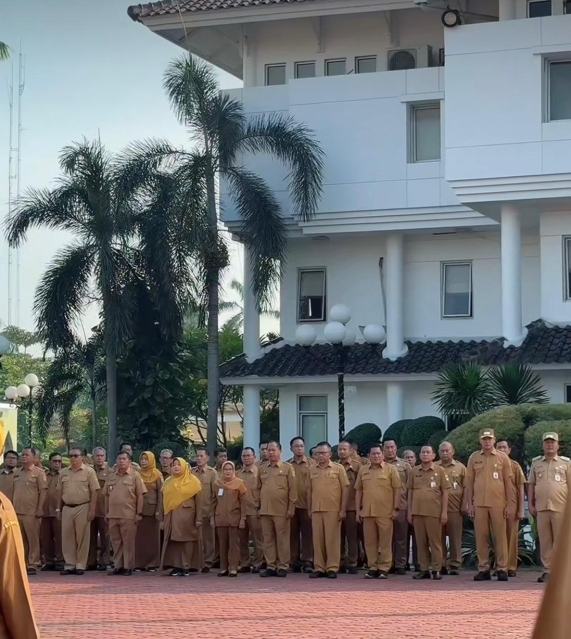 KARAWANG – DETIKKARAWANG.COM – Bupati Karawang H. Aep Syaepuloh memimpin apel pagi di lingkungan kantor bupati sekaligus memberikan piagam penghargaan Lomba Desa tingkat Kabupaten (Anugerah Gapura Sri Baduga) yang dilaksanakan di Plaza Pemda, Senin (6/10/25).