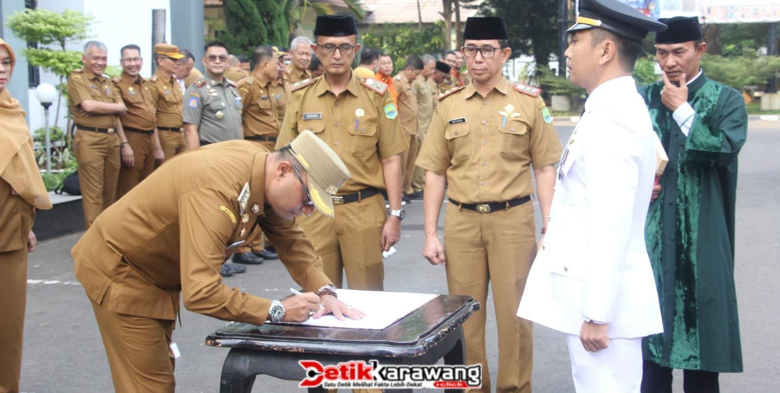SUBANG | Detikkarawang.Click | Pejabat (Pj) Bupati Subang, Dr. Drs. Imran M.Si M.A.C.D., memimpin apel pagi gabungan sekaligus melantik dan mengambil sumpah jabatan sejumlah pejabat administrator di lingkungan Pemerintah Daerah Kabupaten Subang.